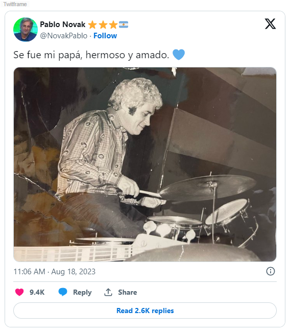 El artista tenía cuatro hijos, dos de ellos conocidos por su trabajo en el medio artístico: Pablo Novak y Julieta Navarro. Pero también era padre de Marcela y Carolina y abuelo de Marcos y Esmeralda.