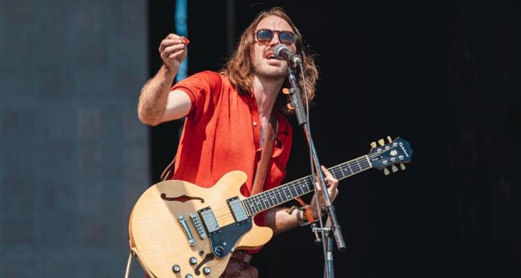 Dante Spinetta ganó el escenario vestido de violeta, con la nutrida banda en composé (todos de rosa) y la guitarra PRS verde que usa desde la última etapa kuryakera: faceta instrumental que viene desarrollando en los últimos años en “Tango” y “La movie”. “¿Están listos para funkear un ratito? Qué lindo día”, comentó, ya una hora más habitable de la tarde, antes de “El lado oscuro del corazón”.