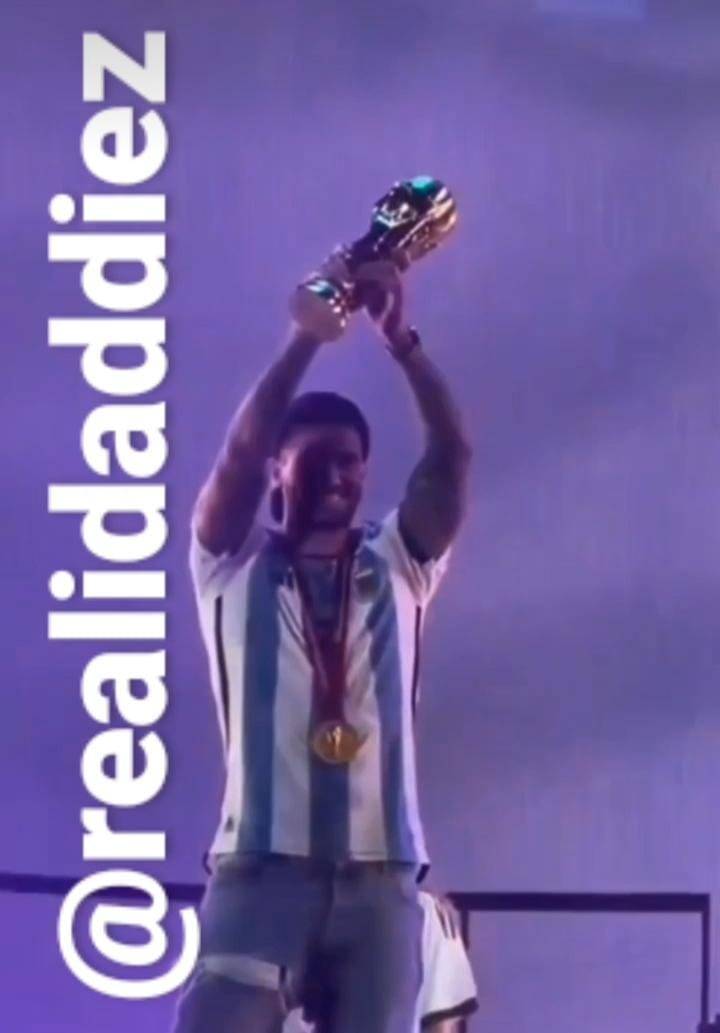 El campeón mundial @rodridepaul fue al concierto de su pareja @tinistoessel en el Campo Argentino de Polo junto a su hija Francesca y la Copa del Mundo subió al escenario y recibió una ovación de todo el público presente con el que cantaron el himno y el 'Muchachos, ahora nos volvimos a ilusionar' de la mano de los chicos de @airbag.oficial.