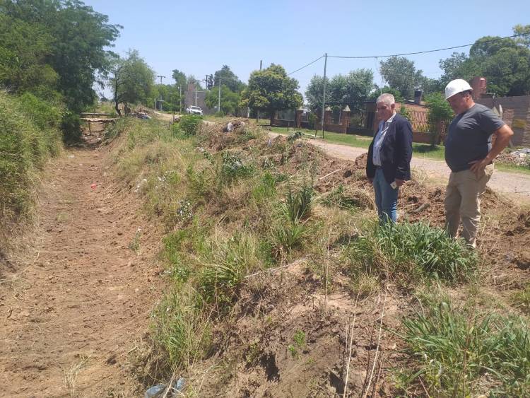 El intendente de la ciudad de Sauce Viejo, Mario Papaleo, recorrió las obras que se llevan a cabo en el zanjón paralelo a calle 18 en el barrio San Cayetano.