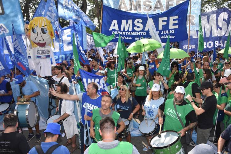 Docentes púbicos y privados se movilizaron hoy al Ministerio de Educación. Dirigentes de AMSAFE y SADOP ratificaron la medida de fuerza para la semana que viene, pese a pedido del gobierno de levantar el paro para 7 y 8 de marzo.