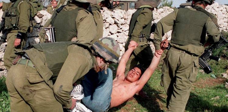 Soldados israelíes lleva colgando de pies y manos a un joven sospechado de haber lanzado piedras contra los efectivos cerca de Ramallah. AP