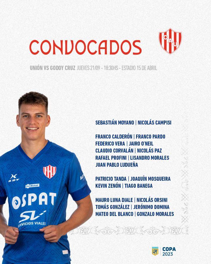 Unión: Sebastián Moyano; Federico Vera, Nicolás Paz, Franco Calderón, Claudio Corvalán y Kevin Zenón; Tiago Banega, Joaquín Mosqueira y Mauro Luna Diale; Jerónimo Dómina y Gonzalo Morales. DT: Cristian "Kily" González.