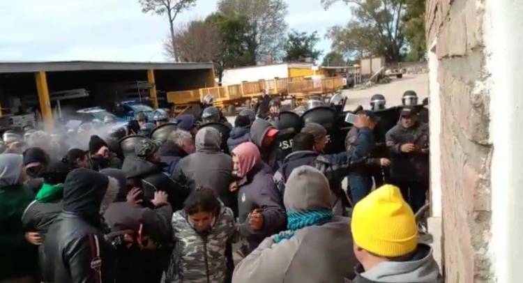 Choque entre la policía y trabajadores municipales en un obrador de la ciudad.