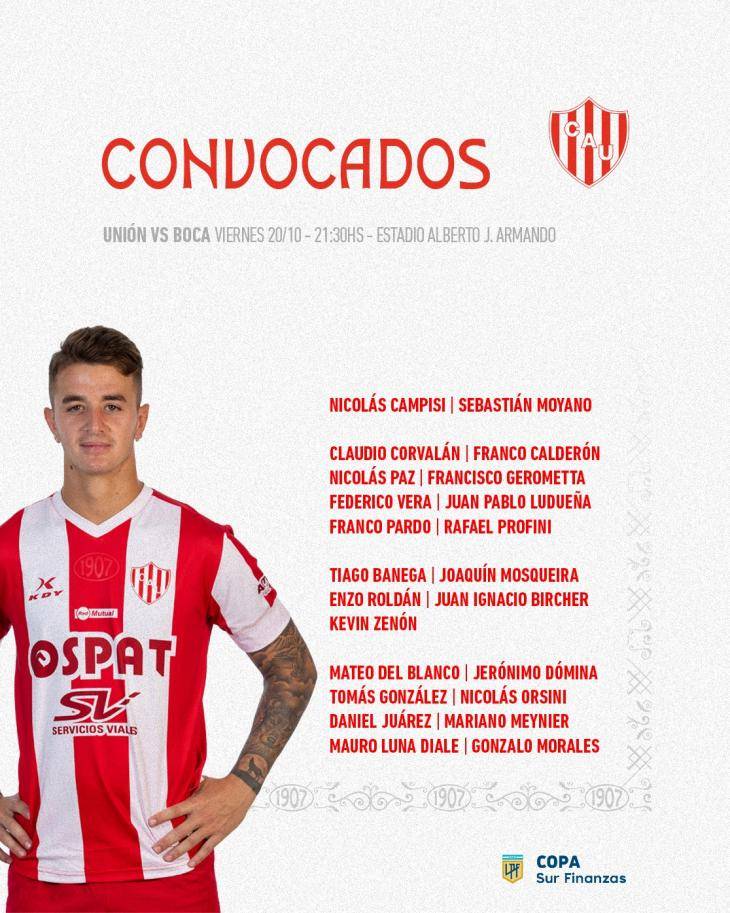 Si bien todavía el entrenador de Unión no ha confirmado ninguna alineación, se descuenta el regreso de Sebastián Moyano en el arco, tras recuperarse de la lesión que lo dejó fuera de los partidos frente a Colón y Sarmiento, en lugar de Nicolás Campisi y en la defensa el retorno de Franco Calderón por Franco Pardo, el resto de los nombres serían los mismos que comenzaron jugando frente a Sarmiento.